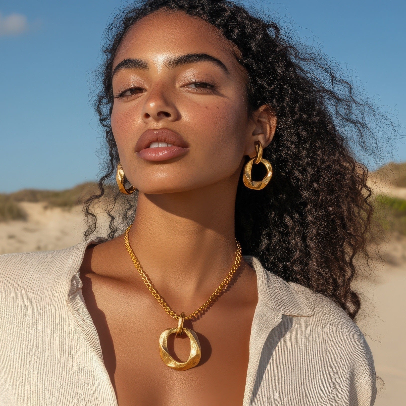 Our stainless steel pieces are made with 18k Gold Plated stainless steel, the highest quality medical-grade alloy known for its durability. Each piece is finished with 18K gold plating, making it tarnish-free, water-resistant, hypoallergenic, and perfect for daily wear. This ensures your jewelry keeps its shine—even with exposure to water, sweat, or everyday elements.